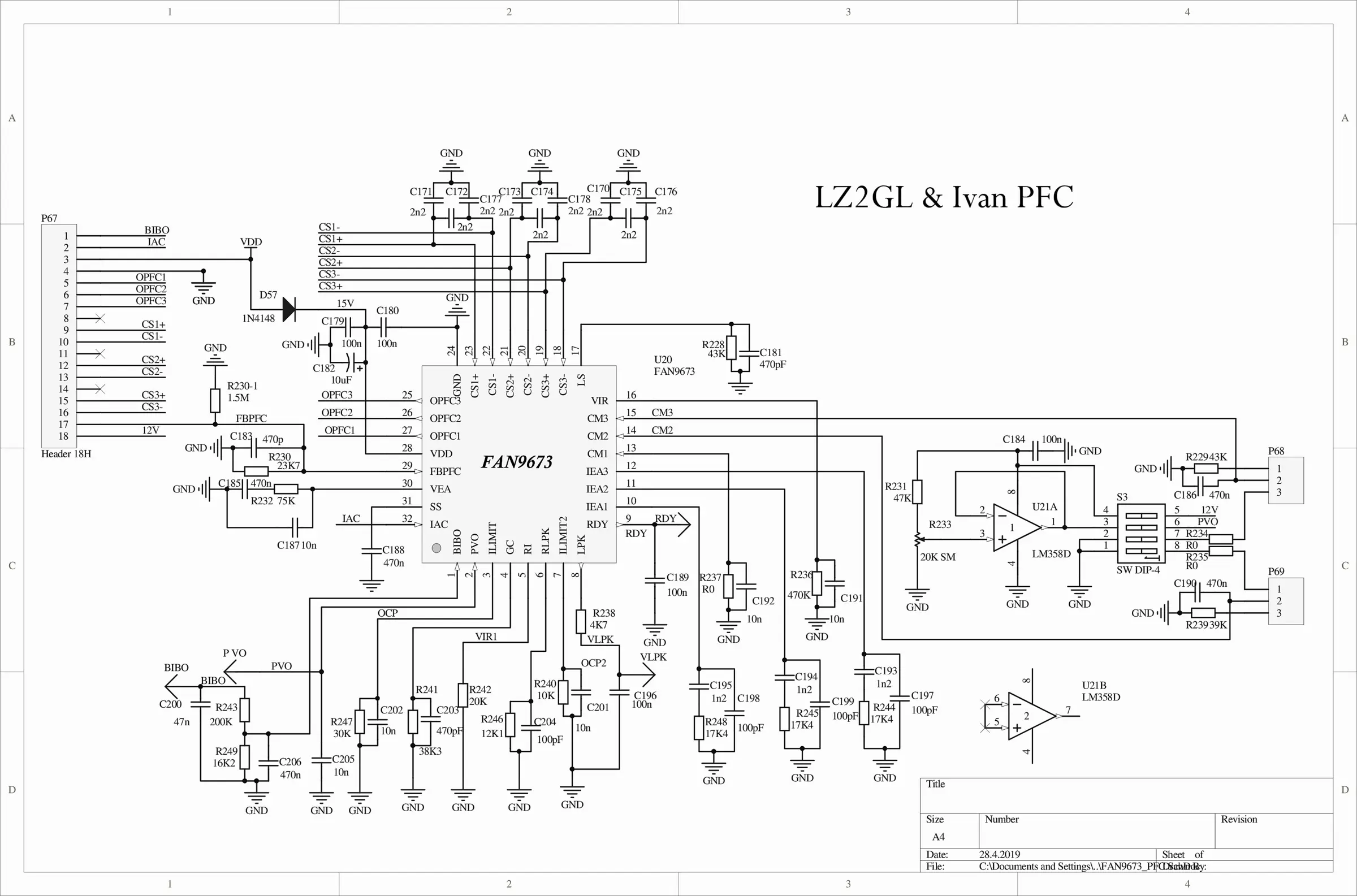 This is our current implementation of a Power Factor Corrector utilizing the FAN9673 integrated circuit. The documentation is actively being developed, with ongoing refinements and additional technical details to be published in subsequent updates.