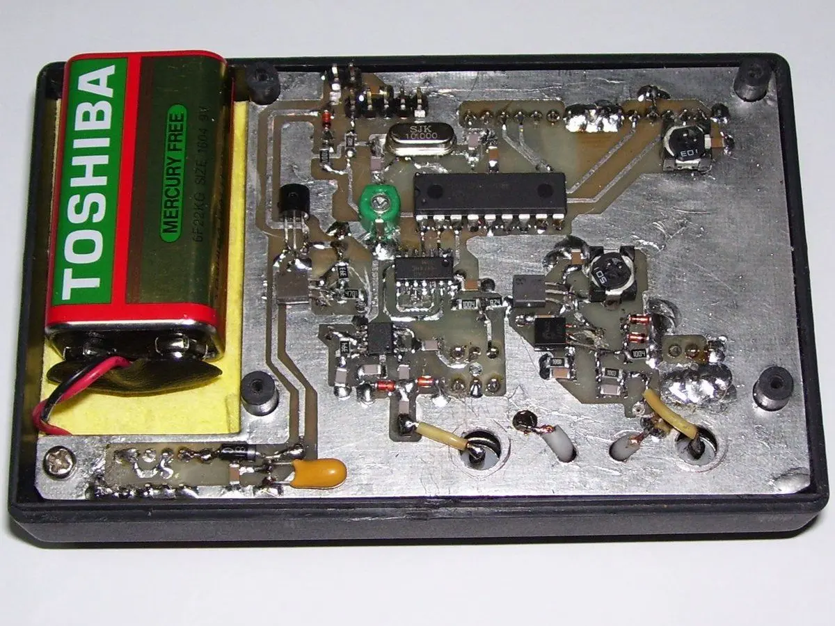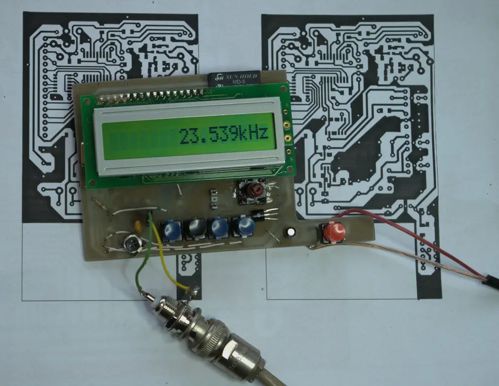 We first developed a frequency meter using the PIC16F84A microcontroller in 2003, based on various online schematics. We wrote the program using documentation from Microchip and other resources found online. The device was completed in early 2003, with the first version launched by the end of March. It performed measurements accurately, although there were some software bugs.