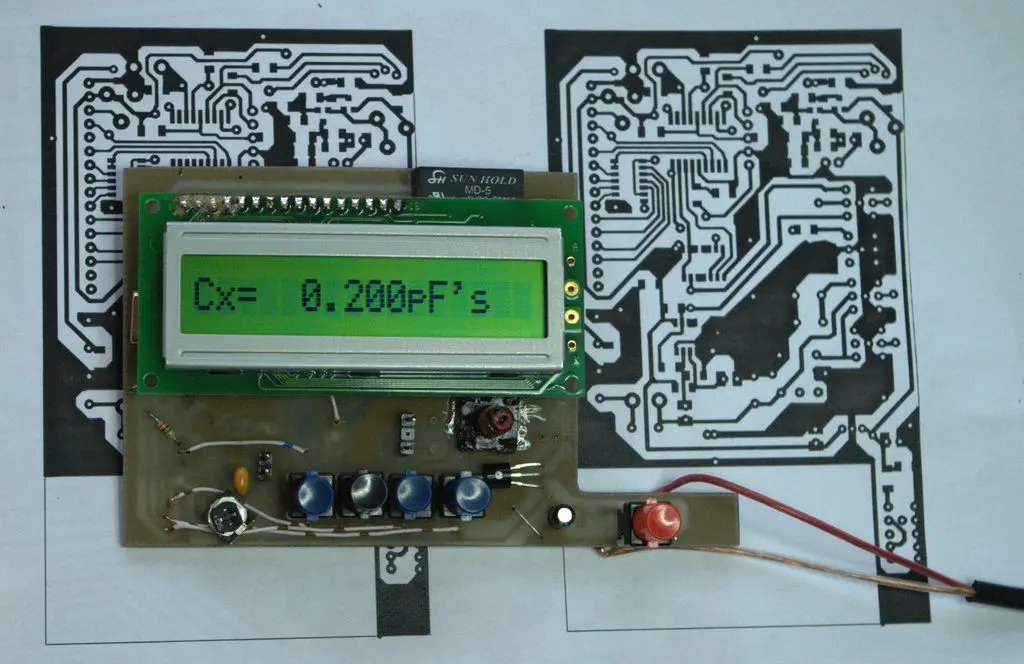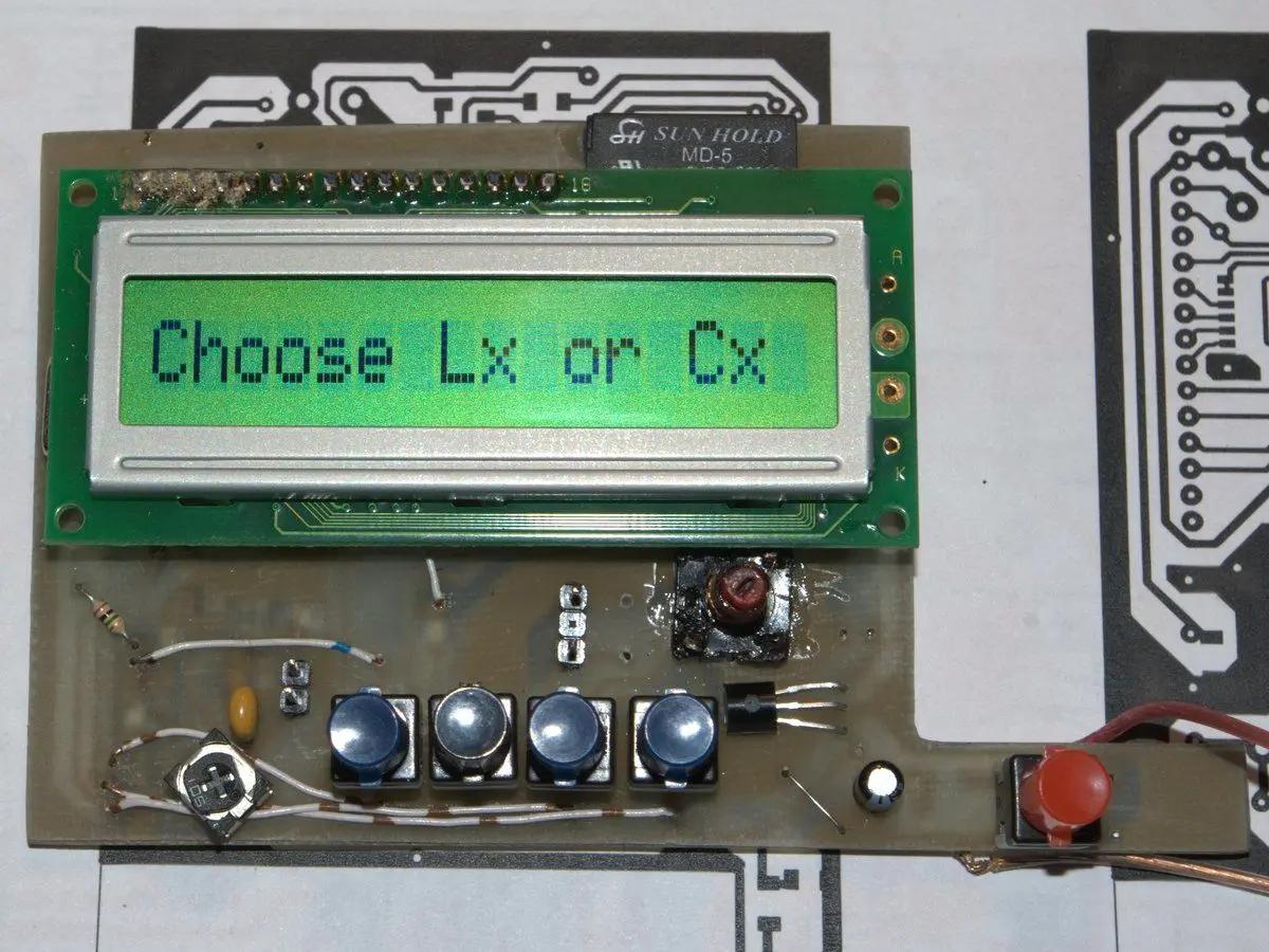 We then decided to develop an LC meter, which required a microcontroller to measure LC generator frequency and perform complex calculations. Generator formulas and schematics are widely available online, with L/C Meter IIB by Neil Heckt being a notable reference.