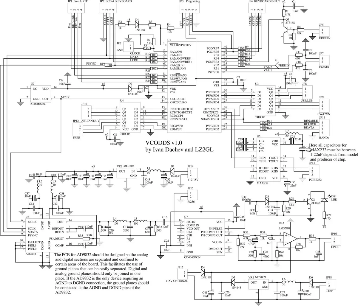 Here you will find schematics for our homemade new SSB/CW transceiver. Synthesizer is based on DDS AD9832 from AnalogDevices and controlled with microcontroller PIC16F877 from Microchip.