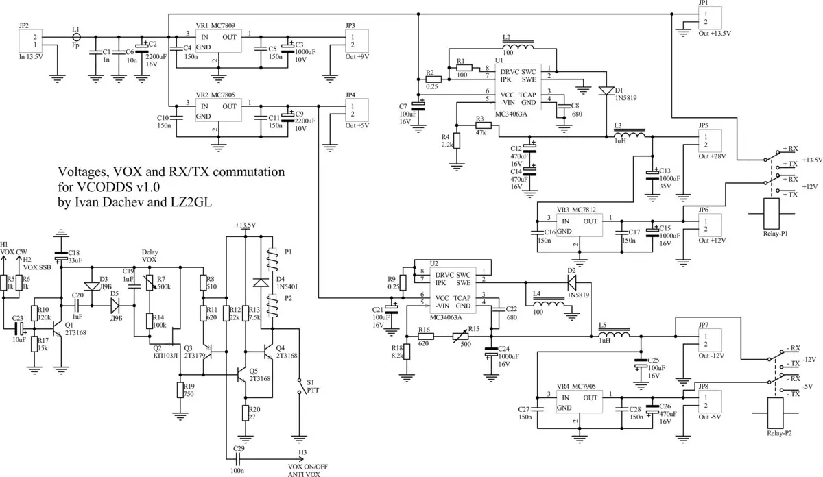 Voltages (+13.5V, +28V, +12V, -12V, -5V), VOX, RX/TX Communications